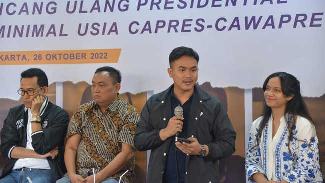 Usul tersebut disampaikan saat sejumlah pemuda menggelar diskusi dengan bertajuk 'Muda Memimpin, Menuju 2024: Bincang Ulang Presidential Treshold dan Batas Minimal Usia Capres-Cawapres'. Diskusi tersebut digelar di Kopitok Kemang, Jakarta Selatan, Rabu (26/10/2022).