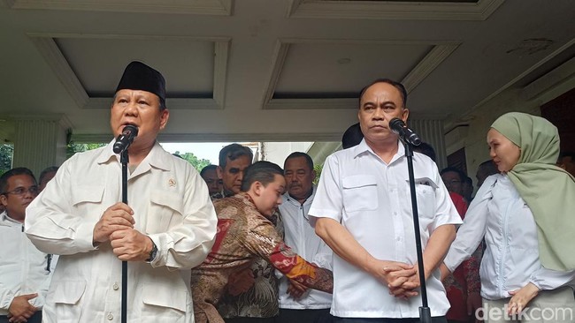 "Tadi saya menerima masukan-masukan dari kawan-kawan Projo, dari kawan-kawan Musyawarah Rakyat, hasil mereka keliling ke daerah-daerah, apa pandangan-pandangan dari bawah dan mereka memberi masukan-masukan pada saya, dan saya juga memberikan penjelasan-penjelasan," ujar Prabowo.