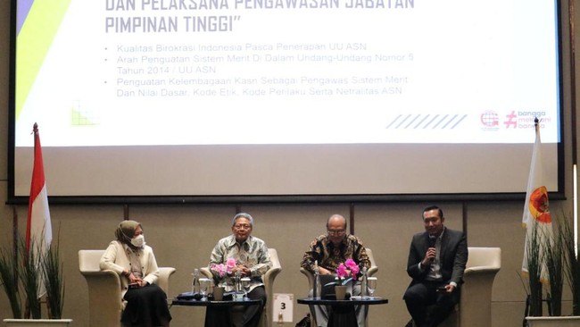 "Saya berpikir bahkan secara kelembagaan mestinya perlu di-handle langsung oleh presiden, dan saya berpikir lebih dari pada itu. Saya kira sistem merit tidak hanya perlu di lingkungan ASN, tidak sekedar di lingkungan aparatur sipil negara tetapi juga aparatur negara yang lain," ujarnya.