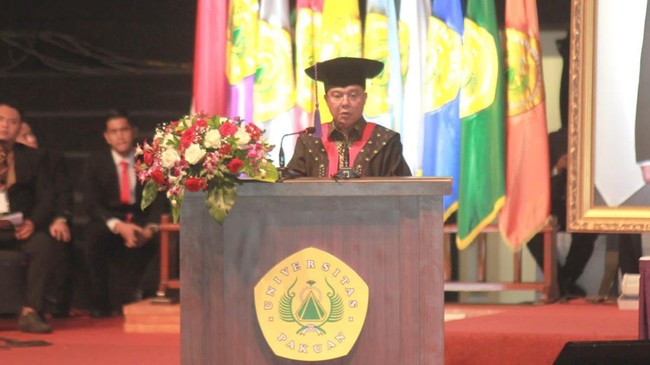 Wakil Ketua DPR Sufmi Dasco Ahmad resmi dikukuhkan sebagai Guru Besar Bidang Ilmu Hukum Universitas Pakuan. Pengukuhan itu dilakukan oleh Rektor Universitas Pakuan Prof Didik Notosudjono dalam sidang senat terbuka Universitas Pakuan.