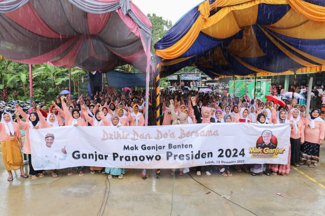 Relawan yang tergabung dalam Mak Ganjar Banten menggelar zikir dan doa bersama di Desa Gunung Anten, Kecamatan Cimarga, Kabupaten Lebak, Banten pada hari ini. Kegiatan ini bertujuan untuk kedamaian dan kemajuan bangsa Indonesia.