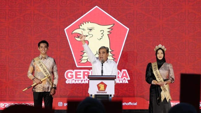 "Mulai tahun depan seluruh pengurus di semua daerah untuk segera memasang baliho dan bendera dengan nomor urut dua. Kita ingin nostalgia karena itu mengingatkan kita dengan proses pemilu sebelumnya yang identik dengan pose dua jari," kata Muzani disambut gemuruh tepuk tangan kader.