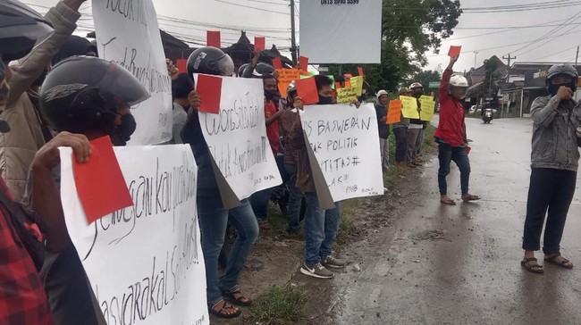 Mereka membawa poster bertuliskan 'Tolak Kampanye Terselubung Anies Baswedan', 'Wong Solo Tolak Anies Baswedan', 'Anies Baswedan, Bapak Politik Identitas, Tolak' dan beberapa poster lainnya. Menurut mereka, Anies telah mencuri start kampanye. Menurutnya, apa yang dilakukan oleh Anies Baswedan itu harusnya mendapat 'kartu merah' lantaran telah mencuri start.