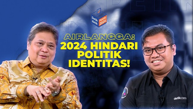 Ketua Umum Partai Golkar Airlangga Hartarto berharap semua pihak menghindari politik identitas pada Pemilu 2024. Hal tersebut disampaikan Airlangga dalam wawancara khusus detik-detik Pemilu 2024 detikcom.
