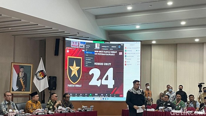 Ketua KPU RI Hasyim Asy'ari mengoreksi sambutan Ketua Umum Partai Ummat Ridho Rahmadi soal asas pemilu. Hasyim mengingatkan asas pemilu tidak hanya luber jurdil, ada juga dilaksanakan 5 tahun sekali.