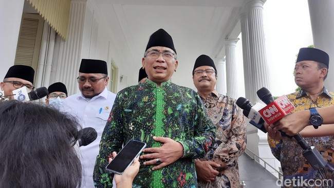 Ketua Umum PBNU Yahya Cholil Staquf atau Gus Yahya bicara soal Partai Ummat yang membentangkan bendera partainya di Masjid At Taqwa, Kota Cirebon, Jawa Barat. Gus Yahya mengimbau agar masjid dihormati dan tidak mengulangi aksi tersebut.