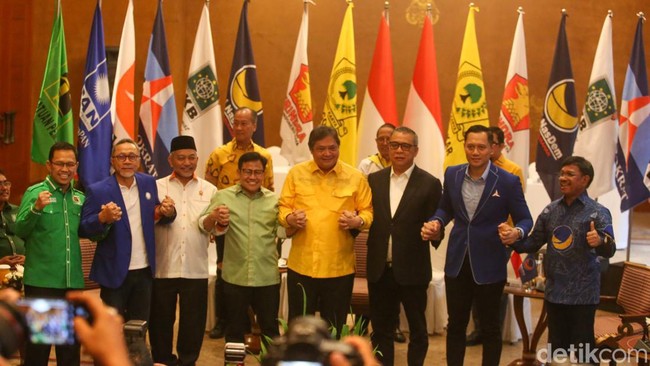 Pertemuan itu digelar pada Minggu (8/1/2023). Sejumlah pemimpin parpol hadir seperti Ketum Demokrat Agus Harimurti Yudhoyono (AHY), Ketum Golkar Airlangga Hartarto, Ketum PAN Zulkifli Hasan, Ketum PKB Muhaimin Iskandar dan Presiden PKS Ahmad Syaikhu.