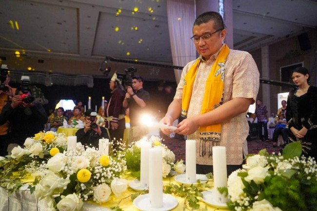 Ketua Umum DPP Partai Golkar Airlangga Hartarto mengajak seluruh kader partai Golkar di Provinsi Sulawesi Utara (Sulut) menggelorakan semangat bersinergi untuk kembali menguningkan wilayah itu di Pemilu 2024. Pesan Airlangga ini disampaikan Wakil Ketua Umum Bidang Penggalangan Strategis Erwin Aksa saat Perayaan Natal Nasional Partai Golkar di Manado.