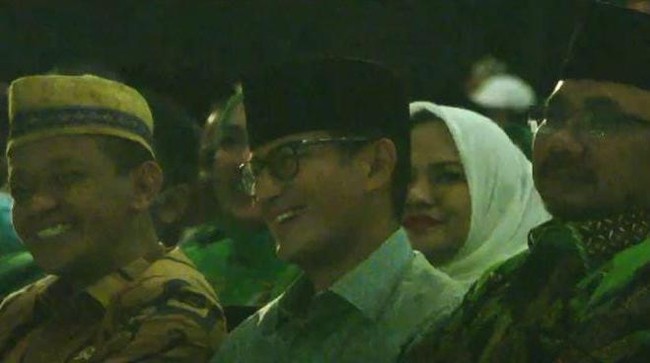 Mardiono kemudian menyapa Sandiaga. Suasana acara pun riuh dengan sorak sorai serta tepuk tangan saat nama Sandiaga disebut.