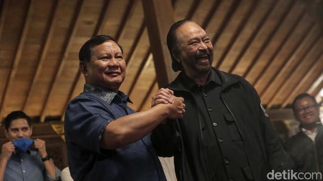 Ketua Umum Partai NasDem Surya Paloh merasakan sambutan yang luar biasa dari Ketua Umum Partai Gerindra Prabowo Subianto di Hambalang, Bogor, Jawa Barat. Surya Paloh menyebut kader NasDem saat tiba di kediaman Prabowo diiringi marching band dengan mars Partai NasDem.