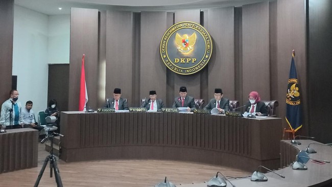 "Memutuskan menolak pengaduan para pengadu untuk seluruhnya," kata Ketua Majelis Heddy Lugito dalam sidang putusan DKPP, Kamis (30/3/2023).
