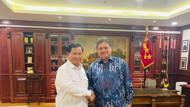 Pertemuan Ketum Partai Golkar dan Ketum Gerindra itu terungkap dalam akun Instagram Airlangga Hartarto. Dia mengunggah foto pertemuannya dengan Prabowo, Selasa (11/4/2023). Adapun pertemuan itu berlangsung di Kantor Kemhan, Jakarta Pusat.
