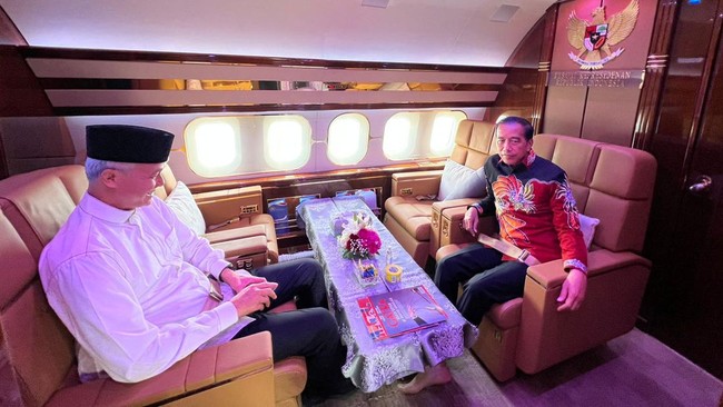 Dari foto yang diterima detikcom, Jumat (21/4/2023), Jokowi dan Ganjar bertolak ke Solo menggunakan pesawat. Di dalam pesawat, keduanya tampak duduk berhadap-hadapan. Senyum tampak terlihat di wajah Ganjar.