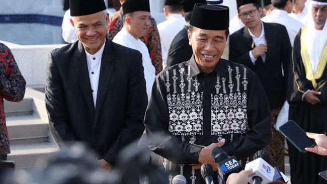 "Kira-kira yang cocok sama Pak Ganjar siapa Pak?" tanya wartawan pada Jokowi seusai salat Idul Fitri di Masjid Sheikh Zayed, Solo, Sabtu (22/4/2023).