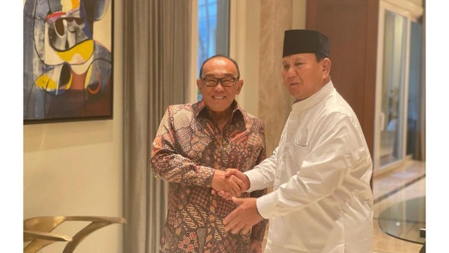 Prabowo masih dengan setelan yang sama. Sementara Airlangga terlihat mengenakan baju muslim berwarna hitam dan peci hitam.