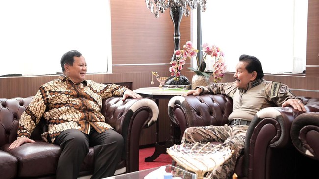 Prabowo mengunjungi Hendropriyono di Patal Senayan, Jakarta. Dalam keterangan tertulis Tim Media Prabowo Subianto yang diterima Kamis (27/4/2023), Prabowo yang disambut hangat oleh keluarga besar Hendropriyono banyak berbincang mengenai masa-masa keduanya masih aktif sebagai prajurit TNI Angkatan Darat.