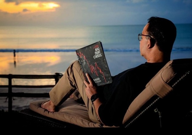 Orang dekat Anies Baswedan menjelaskan maksud Anies membaca buku Principles for Navigating Big Debt Crisis. Menurut orang dekat, Anies pribadi pembelajar.