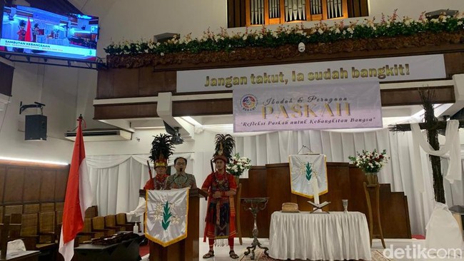"Tadi sore saya telfon beliau, 'monggo Pak Ketum saya temani barengi datang ke sini'. Ternyata beliau harus ada hal yang tidak mungkin beliau tinggalkan, mohon maaf dan salam kepada Romo Magnis kepada keluarga besar teman-teman Katolik, Protestan yang hadir di sini. Yakinlah hati dan semangat Gus Muhamin membersamai panjenengan semuanya dan paskah itu pada hakekatnya adalah kebangkitan bangsa itu yang penting," kata Hasanuddin.