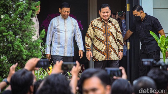 Prabowo Subianto menyambut mantan Ketum Partai Hanura Wiranto yang melakukan safari politik. Dalam kesempatan itu, Prabowo sempat menyampaikan secara terbuka untuk mengajak semua kader potensial, termasuk Wiranto, untuk bekerja sama.