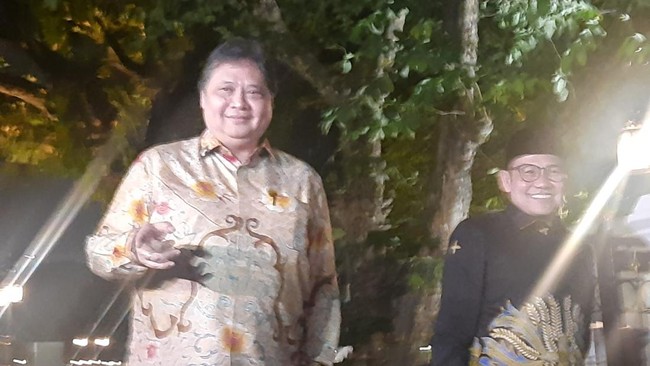 Sebelumnya, Airlangga dan Cak Imin terlihat keluar bareng usai pertemuan Jokowi dan 6 ketum parpol. Adapun pertemuan itu berlangsung di Istana Merdeka, Jakarta Pusat, Selasa (2/5/2023) malam.