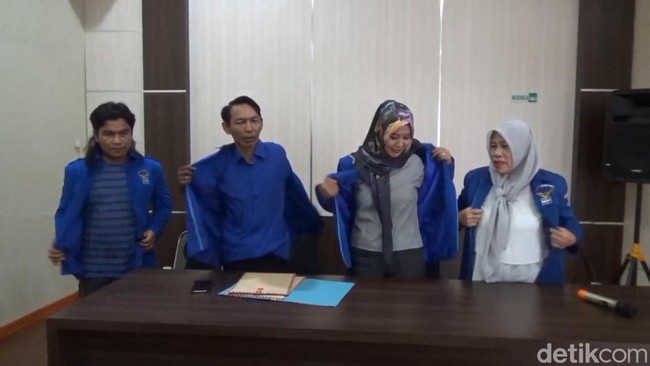 Ketua Srikandi yang juga Wakil Sekretaris DPC Partai Demokrat Kabupaten Purwakarta, Rini Meilani menyatakan mundur di hadapan awak media, ia menanggalkan baju hingga membuat surat pernyataan pengunduran diri.