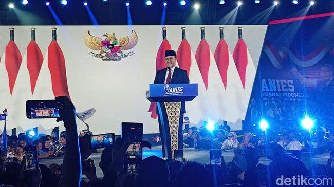 Hal ini disampaikan Anies dalam acara deklarasi relawan Amanat Indonesia (ANIES) di GBK Senayan, Jakarta, Minggu (7/5/2023). Anies dan para petinggi partai pengusungnya hadir secara langsung di acara relawan itu.