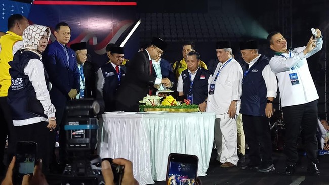 Bakal capres dari Koalisi Perubahan untuk Persatuan (KPP) Anies Baswedan merayakan hari ulang tahun kala menghadiri deklarasi berdirinya relawan 'Amanat Indonesia' (ANIES). Dalam acara tersebut, terlihat ada potong tumpeng untuk perayaan ulang tahun Anies.