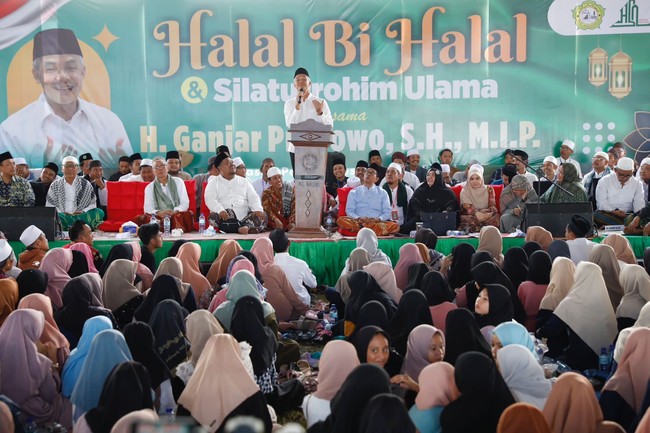 Ganjar bersilaturahmi dan halal bihalal ke Pondok Pesantren (Ponpes) Al Badri di Kabupaten Jember, Jawa Timur. Kedatangannya disambut hangat oleh ribuan ulama, kiai, dan santri se-Jawa Timur (Jatim).
