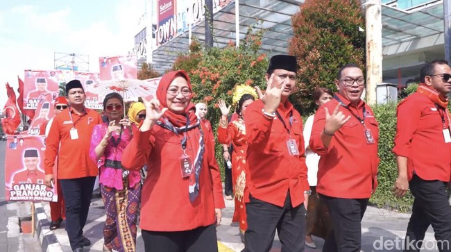 Hendrik bersama bacaleg dan jajarannya berjalan dari Mal Depok Town Square hingga menuju KPU Depok. PDIP menampilkan tarian budaya Reog dan Kuda Lumping.