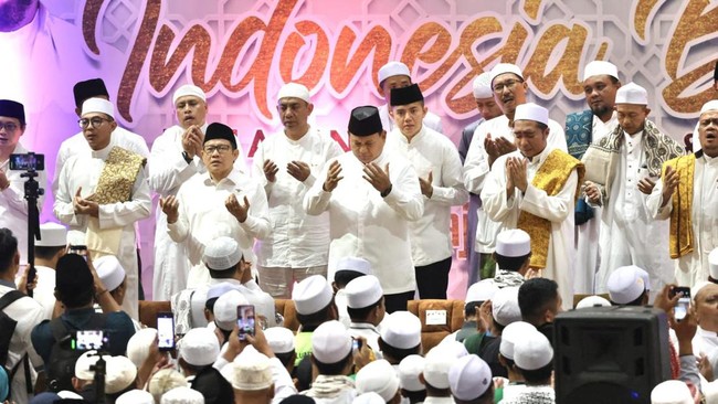 "Marilah kita bersyukur, berbangga menjadi bangsa Indonesia. Memang banyak kekurangan. Kunci sekarang adalah apakah pemimpin-pemimpin Indonesia bisa rukun, kerja sama," ucap Prabowo.