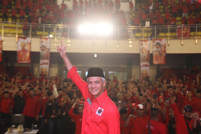 Acara ini dihadiri oleh ribuan kader, mulai dari tingkat DPD, DPC, PAC, ranting, anak ranting hingga sayap partai PDIP dalam rangka pemenangan Ganjar Pranowo dalam Pilpres 2024 mendatang.
