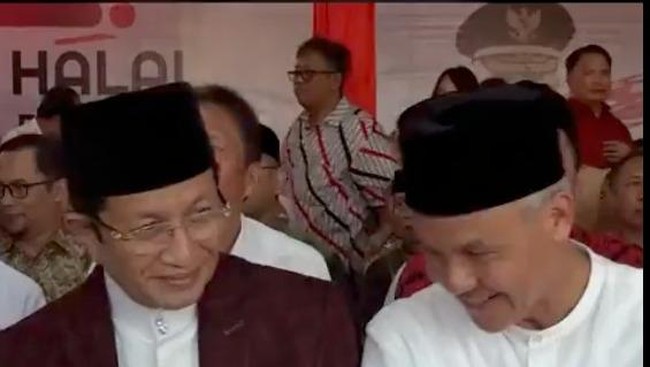 Dalam video itu terlihat saat Ganjar tiba di lokasi acara. Nasaruddin juga terlihat baru tida dan keduanya saling sapa dengan bersalaman. Di panggung pun, Ganjar dan Nasaruddin duduk bersebelahan.