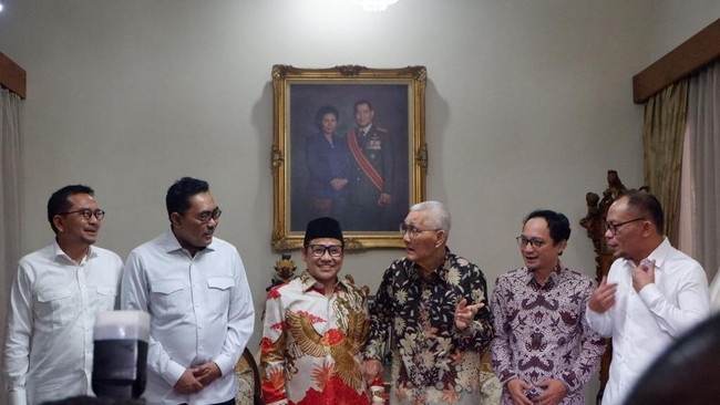 Sebelumnya Cak Imin berkunjung ke kediaman Wakil Presiden (Wapres) ke-11 RI Boediono hari ini, Rabu (17/5). Kedatangan Cak Imin disambut hangat Boediono.