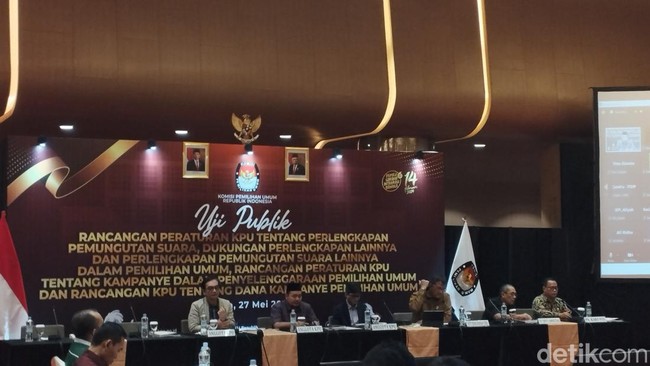 Untuk diketahui rancangan PKPU yang diuji publik hari ini yakni Rancangan PKPU tentang Perlengkapan Pemungutan Suara, Dukungan Perlengkapan Lainnya dan Perlengkapan Pemungutan Suara Lainnya dalam Pemilihan Umum; Rancangan Peraturan KPU tentang Kampanye dalam Penyelenggaraan Pemilihan Umum; dan Rancangan Peraturan KPU tentang Dana Kampanye Pemilihan Umum.
