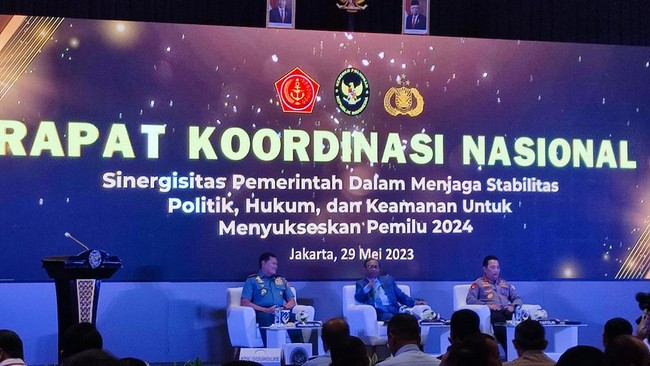 Menko Polhukam Mahfud Md menggelar rapat koordinasi bersama Panglima TNI Laksamana Yudo Margono dan Kapolri Jenderal Listyo Sigit Prabowo. Rapat ini membahas sinergitas pemerintah dalam menjaga stabilitas politik dan keamanan untuk menyukseskan Pemilu 2024.