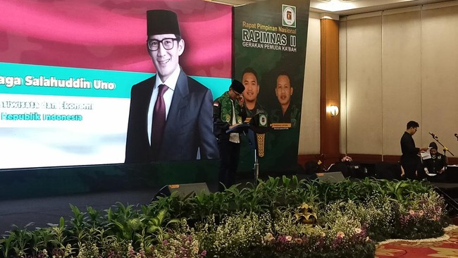 Sebelumnya, Sandiaga Uno menghadiri acara Rapat Pimpinan Nasional (Rapimnas) II Gerakan Pemuda Ka'bah (PP GPK). Plt Ketua Umum PPP Mardiono turut mendampingi kehadiran Sandiaga.