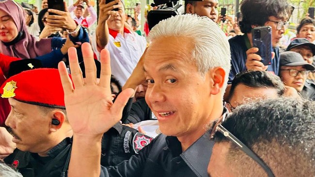 Pantauan detikcom, Kamis (1/6/2023) siang, Ganjar tiba dengan pakaian hitam di rumah pemenangan yang berlokasi di Jalan Diponegoro Nomor 72, Jakarta Pusat itu. Relawan berbaju nuansa merah memadati halaman rumah menyambut Ganjar.
