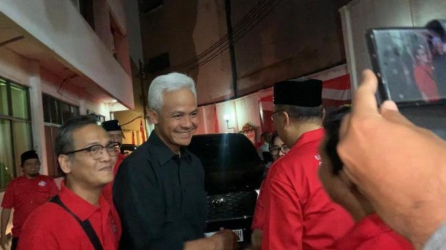 Pantauan detikcom di lokasi, Sabtu (3/6/2023), Ganjar Pranowo hadir di lokasi deklarasi, kantor DPP Persatuan Alumni Gerakan Mahasiswa Nasional Indonesia (GMNI), Jl Cikini Raya No 69, Jakpus, sekitar pukul 22.08 WIB. Ganjar mengenakan setelan baju berwarna hitam.