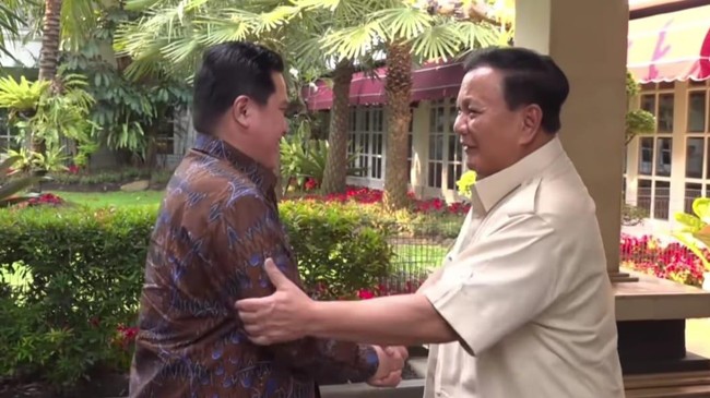 "Apakah tadi disebut? Rasanya untuk urusan Pak Erick Thohir, itu masuk dalam menu wajib pertemuan," katanya.
