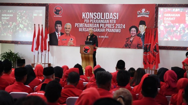 Bakal calon Presiden (Bacapres) PDIP Ganjar Pranowo melakukan konsolidasi di Nusa Tenggara Barat (NTB) usai sebelumnya melalui kegiatan serupa di Bali. Di NTB sendiri, Ganjar menargetkan menang suara 51%.