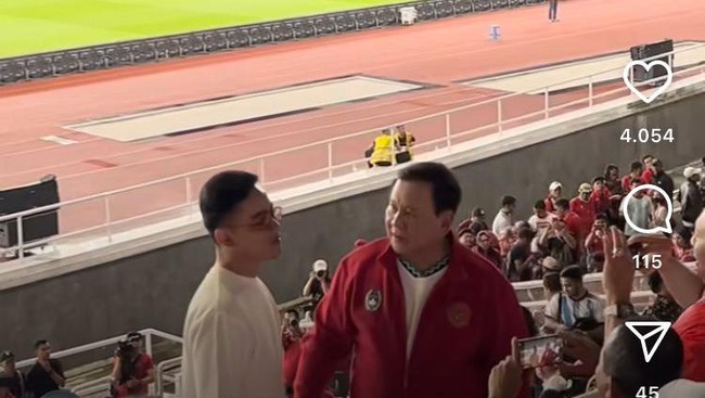 Wali Kota Solo Gibran Rakabuming Raka sempat bertemu Menteri Pertahanan sekaligus Ketum Partai Gerindra Prabowo Subianto di tengah pertandingan Timnas Indonesia Vs Argentina di Stadion Utama GBK. Kedua tokoh tersebut sempat berbincang-bincang.
