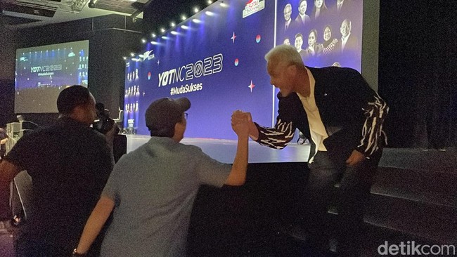 Setibanya di lokasi acara, Ganjar langsung tos bareng dengan Arsjad Rasjid. Diketahui, Ketum Kadin itu tiba lebih dulu dan telah memberikan materi dalam acara hari ini.