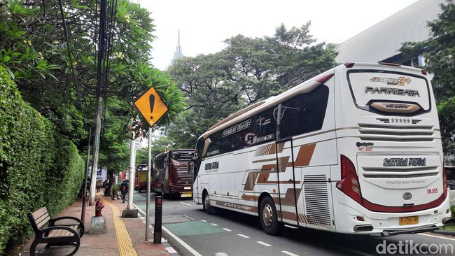 Kemacetan terjadi di Senayan, Jakarta Pusat, imbas bus yang hendak parkir di sekitar GBK. Bus tersebut mengangkut kader NasDem yang hendak menghadiri apel siaga.