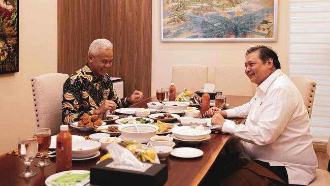 Hal itu disampaikan Airlangga usai bertemu dengan Ganjar Pranowo di Kantor Kementerian Koordinator Perekonomian di Jakarta Pusat pada Senin (17/7/2023). Pertemuan keduanya membahas mengenai Proyek Strategis Nasional (PSN) di Jawa Tengah.