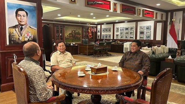 Menteri BUMN Erick Thohir dan Menteri Pertahanan RI Prabowo Subianto ternyata bertemu Presiden Joko Widodo (Jokowi) di Istana Bogor dua hari lalu. Erick Thohir dan Prabowo ternyata lanjut bertemu hari ini.