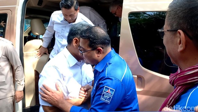Sekjen Gerindra Muzani dan rombongan tiba di DPP Partai Dempkrat sekitar pukul 13.55 WIB. Selain Muzani, tampak Waketum Partai Gerindra Sugiono, dan Anggota Dewan Pembina Partai Gerindra Andre Rosiade.