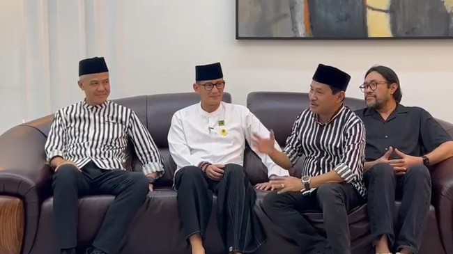 Ketua Bappilu PPP Sandiaga Uno bertemu dengan bacapres PDI Perjuangan (PDIP) Ganjar Pranowo di rumah mantan Bupati Bogor, Rahmat Yasin. Apakah pertemuan keduanya menandakan kode Sandiaga sebagai cawapres Ganjar?