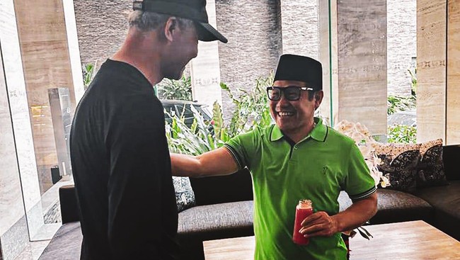 Sementara, dalam foto kedua, Ganjar dan Cak Imin tampak berdiri sembari tersenyum menunjukkan kedekatan. Di tangan Cak Imin juga tampak minuman berwarna merah yang disinggung Ganjar.