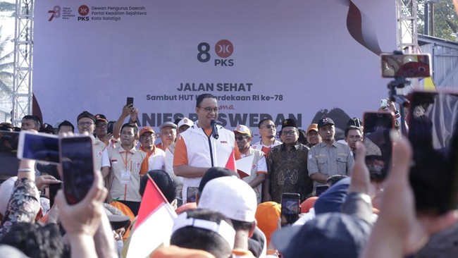 "Kita berkumpul di sini untuk kegiatan jalan sehat, ini namanya sudah betul, jangan pakai nama jalan santai, karena Republik Indonesia ini sedang tidak perlu santai-santai," kata Anies dalam keterangannya yang dibagikan PKS, Minggu (13/8/2023).