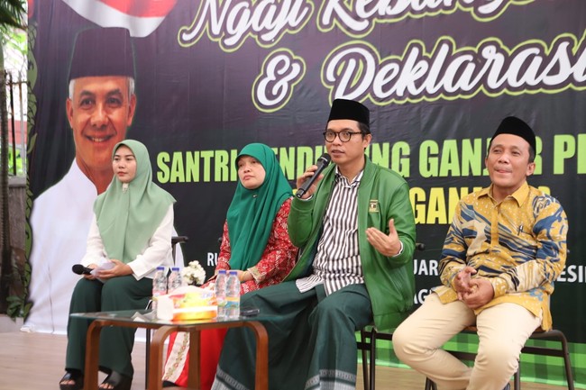 Relawan Santri Mendukung Ganjar Pranowo (Sarung Ganjar) yang terdiri dari perwakilan santri seluruh Indonesia resmi mendeklarasikan dukungan terhadap Ganjar Pranowo untuk maju sebagai calon presiden di Pemilu 2024. Ketua DPP PPP Achmad Baidowi yang hadir sebagai pemateri ngaji kebangsaan di deklarasi Sarung Ganjar, Minggu (13/8) menyebut Ganjar merupakan calon presiden yang paling peduli terhadap pesantren.